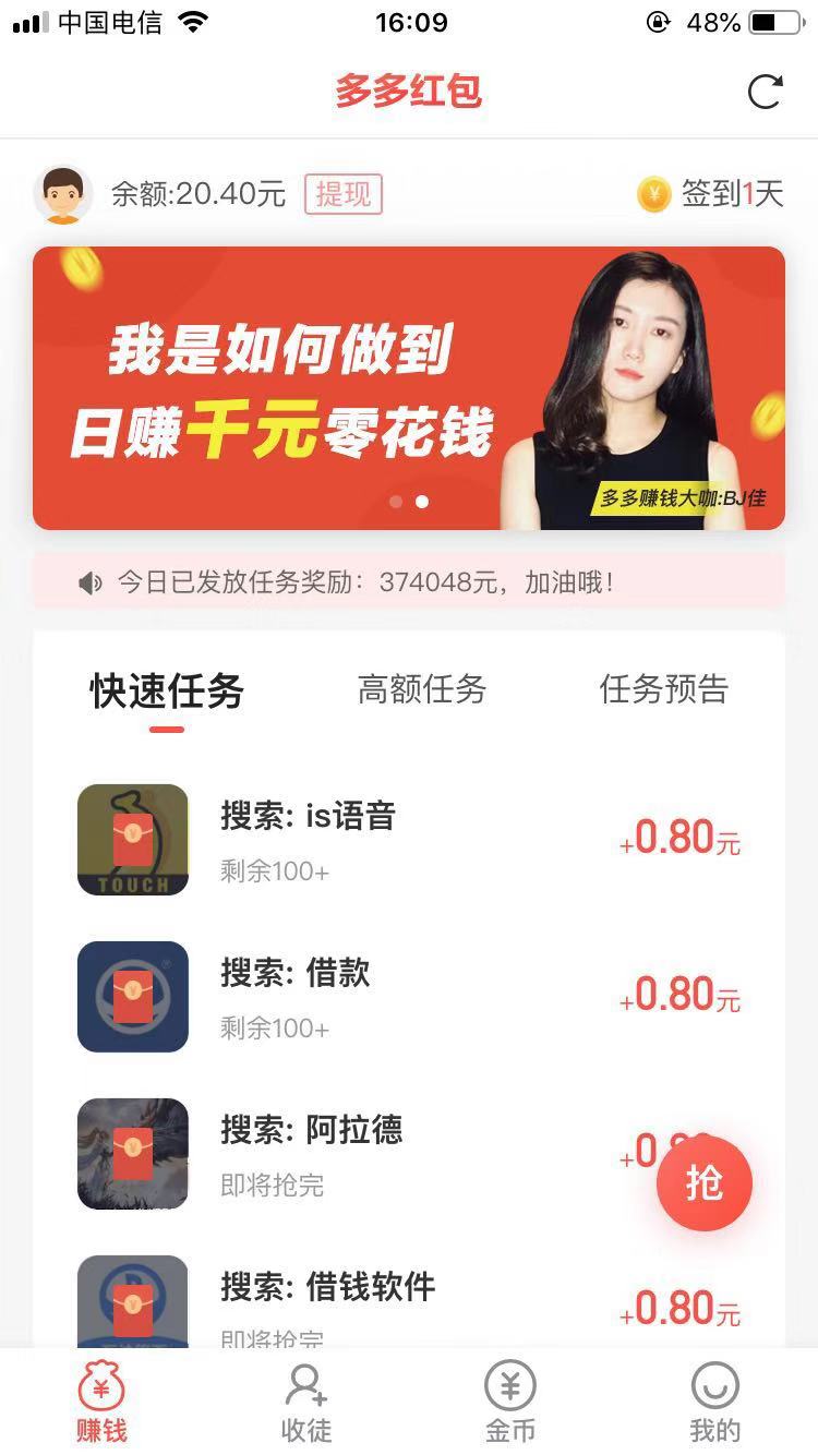 原pp红包,一个苹果手机试玩赚钱平台,pp红包,新用户注册就送1元红包,只需三分钟试玩就可以获得丰富的现金奖励,试玩赚钱任务单价高达0.88元,每天任务量都挺多的,最低只需要10元余额就可以申请结算打款,邀请好友可以赚10-14元,邀请更多好友让好友帮你赚钱,躺在家就可以收提成,你就是在线版的“房东”,快来下载试玩体验吧。